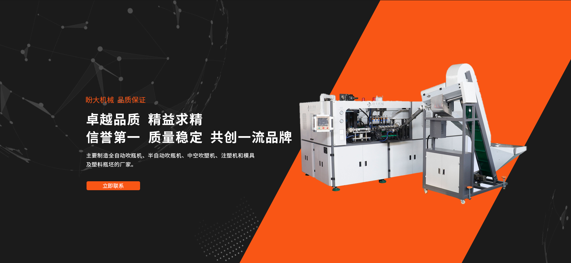 臺州盼大機(jī)械有限公司座落于東海之濱, 著名的“蜜桔之鄉(xiāng)”和“模具王國”—浙江黃巖。主要制造全自動吹瓶機(jī)、半自動吹瓶機(jī)、中空吹塑機(jī)、注塑機(jī)和模具及塑料瓶坯的廠家。本廠擁有多年的生產(chǎn)經(jīng)驗,采用進(jìn)口和國產(chǎn)的高質(zhì)量生產(chǎn)設(shè)備和檢驗儀器。MT系列多功能吹瓶機(jī)是本廠生產(chǎn)和研發(fā)的一種操作簡單、成品率高、適用性廣、可靠性穩(wěn)定的吹瓶機(jī)。采用進(jìn)口的先進(jìn)氣動元件,設(shè)計以高效益,高精度,維修安全,集美觀耐用于一體。